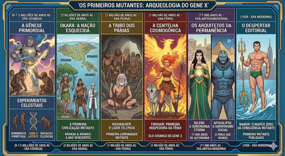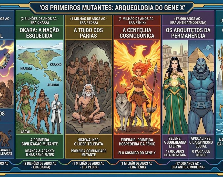 Embora o imaginário popular situe o surgimento dos mutantes na era atômica estadunidense, a verdadeira arqueologia do Gene X revela uma linhagem que desafia a própria cronologia da humanidade. Para compreender a biopolítica contemporânea dos X-Men, é preciso reconhecer que o mutante não é um convidado recente na história da Terra, mas um protagonista que molda a realidade desde os primórdios da vida biológica. A … Continuar lendo Capítulo 2: Arqueologia do Gene X dos Mutantes