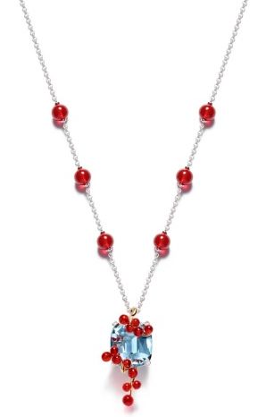 Vodka, suco de cranberry e suco de limão são alguns dos ingredientes principais na criação do drink Blue Sea. Conhecida pela cor azul, a bebida foi a inspiração do pendente em ouro amarelo 18K tem como detalhe central uma pedra de água-marinha em corte de almofada. O desenho é completo por 19 contas de opala de fogo e 52 brilhantes.
