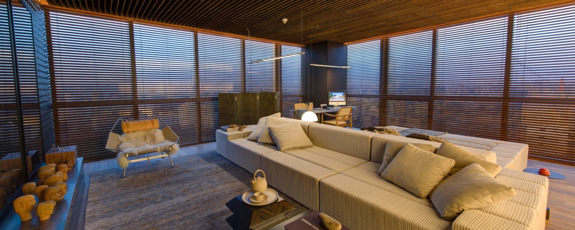 · Débora Aguiar: a linguagem de projeto dela é reconhecível, ela consolidou um estilo que traduz sofisticação. Um ambiente leve, cores claras, elegantemente revestido nas paredes e teto com madeira clara, contrastando texturas e materiais tom sobre tom, pontuando em móveis e objetos cores mais profundas.