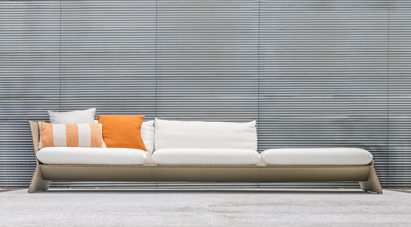 “Sofás normalmente são caixotes forrados de tecido. Quis desafiar essa lógica, trocando o caixote por uma estrutura delgada, visualmente leve e sofisticada, introduzindo no universo dos estofados a linguagem contemporânea do design. O resultado é um equilíbrio estético entre industrial e artesanal, robustez e leveza”, explica Guto.