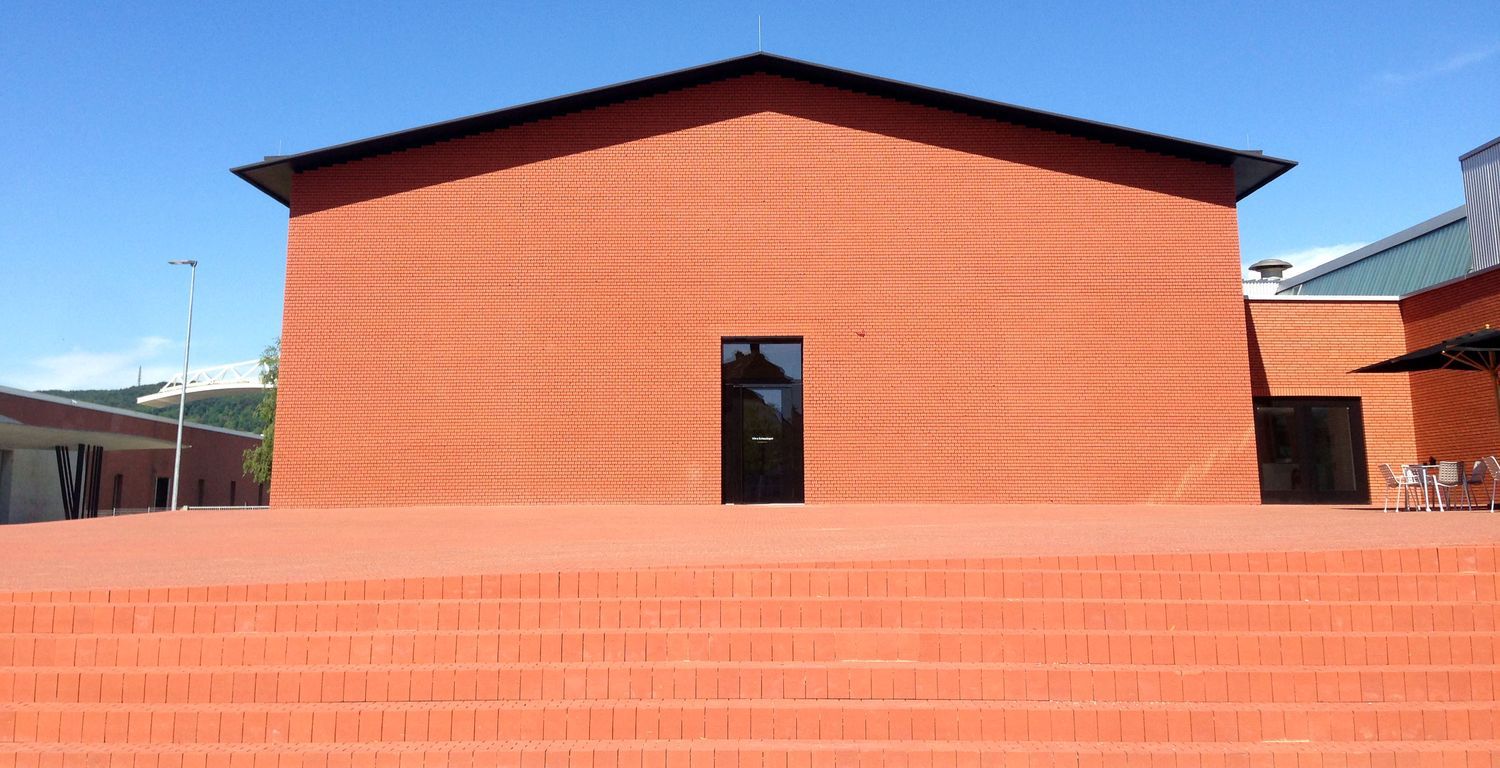 Devido aos altos custos para se planejar uma estrutura no subsolo, os arquitetos convenceram Fehlbaum a construir um prédio mais simples. E, assim, nasceu o “Vitra Schaudepot”, com um desenho primário de uma casa: um telhado de duas águas, paredes de alvenaria e poucas e simples aberturas. Além do espaço de exposições, o edifício também conta com uma loja e um café. As fachadas e piso externo são inteiramente revestidas de tijolos com poucas variações de tons, o que confere uma uniformidade na cor, bem vermelha. Por serem fabricados artesanalmente, os tijolos diferenciam-se na forma sutilmente, criando uma textura muito interessante.