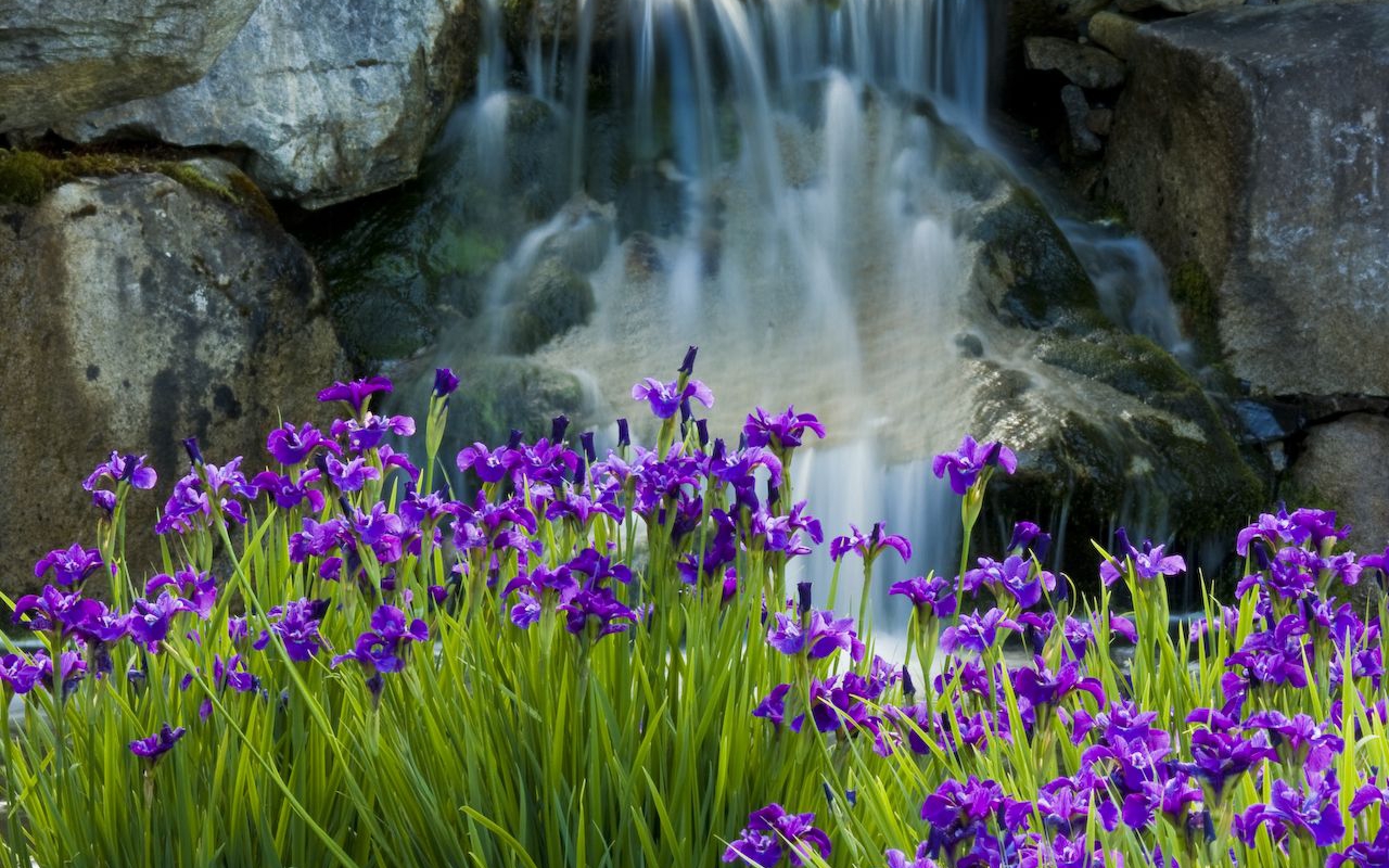 Japanese iris growing in front of our front-yard waterfall.