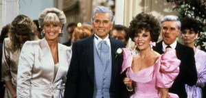 Linda Evans (Krystle), John Forsythe (Blake) e Joan Collins (Alexis) em Dinastia