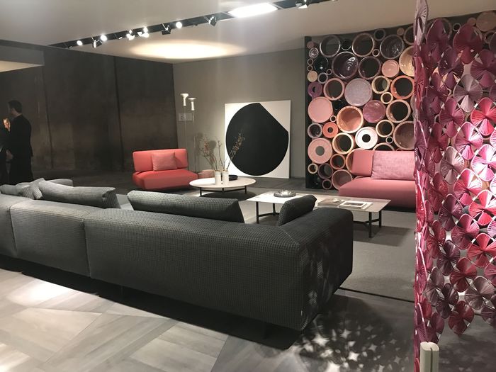 No restante do salão vi muitas novidades. Os sofás componíveis em “L” ou em canto em muitas versões continuam muito presentes. A novidade é que os tons de camurça, marrom e caramelo aparecem bastante quebrando a hegemonia do cinza.