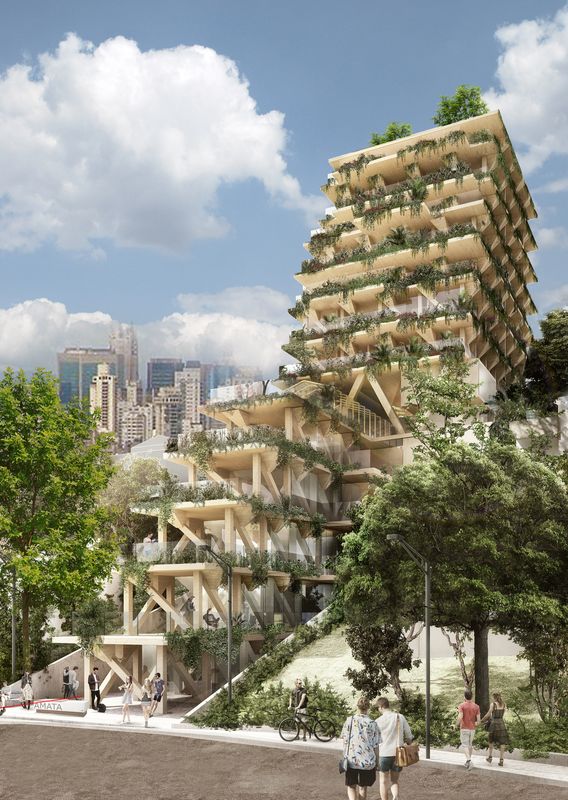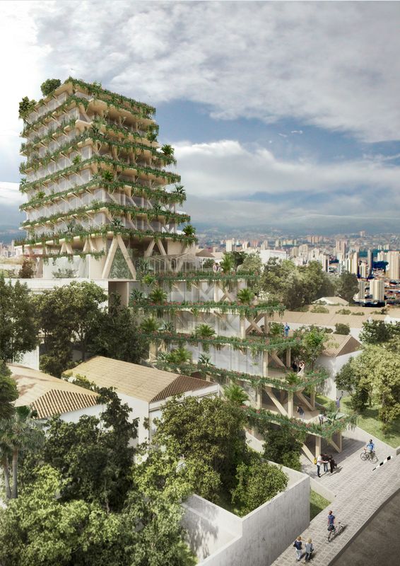 O projeto será uma colaboração entre a empresa de florestamento AMATA e o escritório franco-brasileiro Triptyque Architecture e contará com 13 andares com área total de 4.700 m² para contemplar múltiplos usos, como co-working, co-living, lojas e restaurantes.