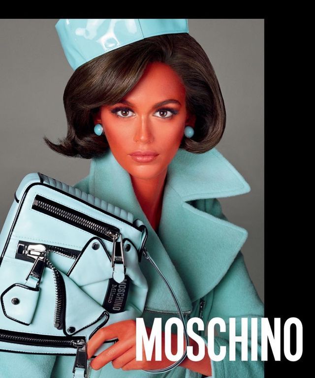 Fiel ao conceito do desfile, a campanha do outono-inverno 2018-19 da Moschino aposta em mulheres alienígenas. O estilista Jeremy Scott convocou as modelos Gigi Hadid, Kaia Gerber, Vittoria Ceretti e Soon Joo Park para posar para as lentes de Steven Meisel, pintadas como alien de “Star Trek’, incluindo terninhos com saia e vestidos em vibrantes cores com perfume 60s.
