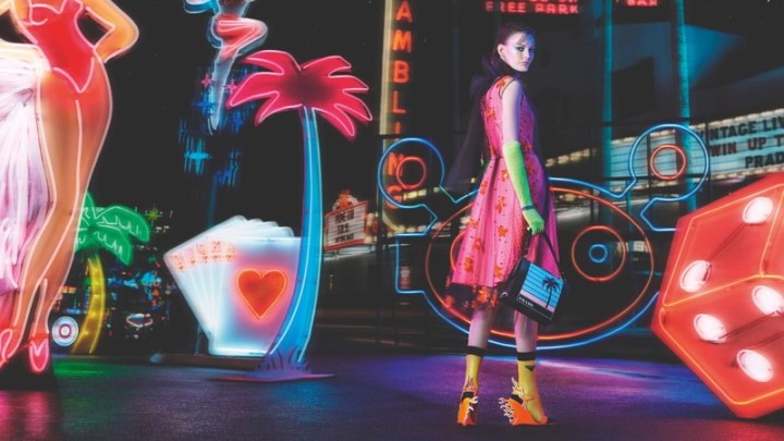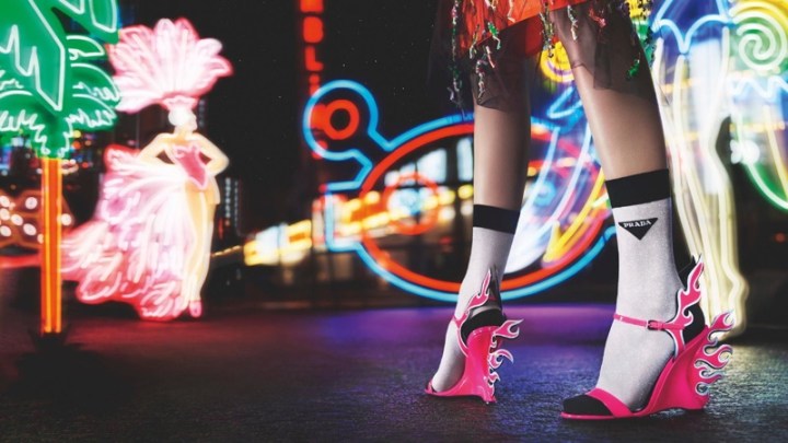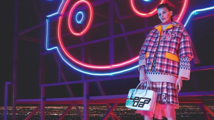 A campanha Fall Winter 2018-19 da Prada é bem colorida e cheia de Neon – como os filmes da década de 1980 – inspiração da coleção. Com make pesado, Amanda Murphy é estrela das fotos feitas por Willy Vanderperre e stylish de Olivier Rizzo, que se divertiu no resgate da deliciosa cafonice da época.