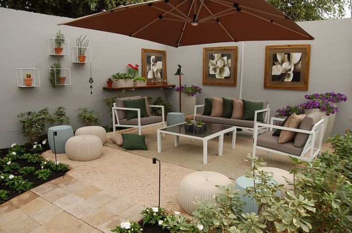 Banquetas e caixas de feira de Pinnus Elliotti (madeira de reflorestamento), tambores são usados como sofá, porta-garrafas, porta-lenha e luminárias. A madeira de demolição e as cruzetas são utilizadas em móveis, decks, pergolados e pisos. Objetos antigos e de família integram harmoniosamente a decoração. Plantas de baixa manutenção, que exigem pouca rega, têm a preferência dos paisagistas em época de tempo seco.