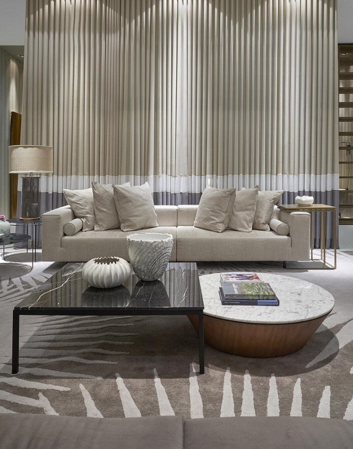 O azul marinho e off-white do sofá Way predominam nesse espaço concebido pelo estúdio Nada Se Leva. Para trazer um pouco de bossa ao ambiente, um tapete quadriculado foi a opção escolhida. O resultado proporciona o ar contemporâneo que o décor pede (foto que ilustra o post).