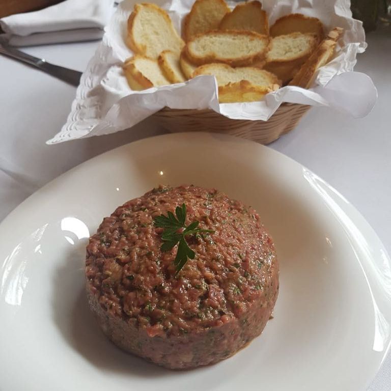 Um das estórias sobre a origem do Steak Tartare remete à uma tribo nômade e bélica da Ásia Central, que ficou conhecida na Idade Média quando começou a montar inúmeros cercos sobre os países do Leste da Europa: os Tatars, oriundos da Mongólia, cujo nome virou Tartars. Sempre a cavalo, eles costumavam fatiar a carne crua, depois a salgavam e a colocavam debaixo da sela para amaciar as fibras e tirar o excesso de sangue enquanto galopavam. Na hora da refeição, eles retiravam o pedaço, removiam o sal, moíam a carne para amaciá-la ainda mais e, por fim, a comiam crua.