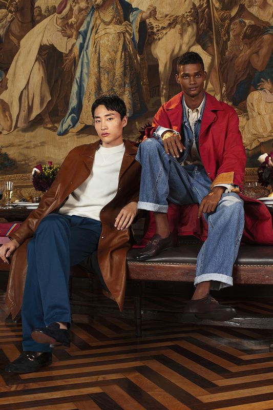 Esses modelos serão lançados em preto – parte de uma história gráfica em preto e branco acentuada por uma estampa de cobra que é um tema-chave da temporada, e também na readaptada estampa Sumatra. Essa estampa de 1990, descoberta nos arquivos pelo designer Paul Andrew, foi dividida e redimensionada em lenços de seda, sapatos e bolsas.