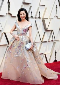 Oscar 2019 Michelle Yeoh vese Elie Saab e joias Chopard @ Getty