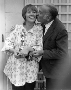 Oscar 1972 Glenda Jackson (Mulheres Apaixonadas) recebe de Hal Wallis o prêmio em casa @ Getty