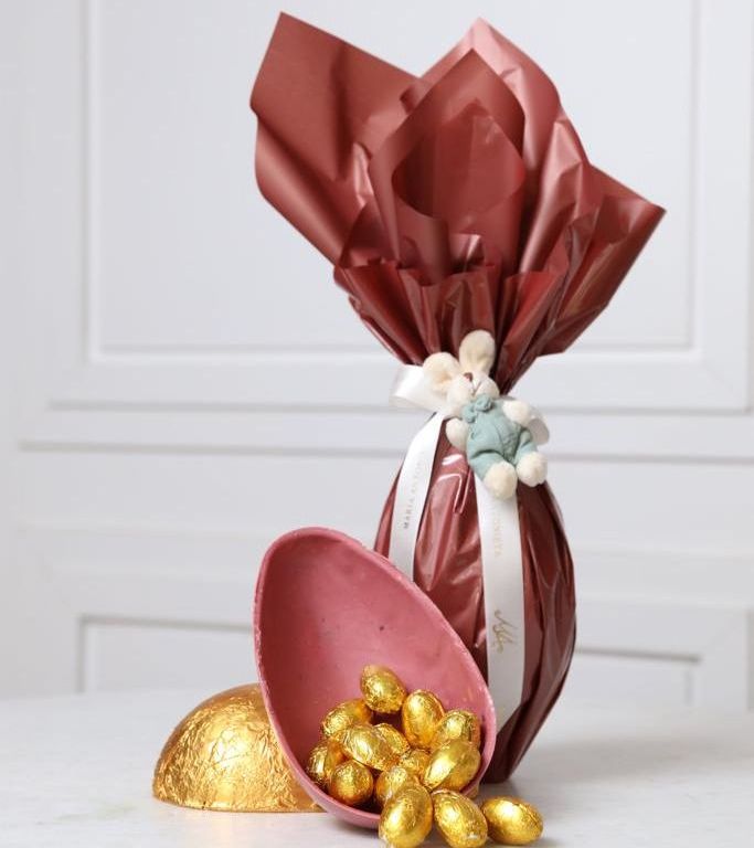 A Coleção de Páscoa da Maria Antonieta conta também com os sabores Ao Leite com crocante de feuilletine, Meio Amargo com crocante de avelã, Gold com crocante de pecan e Branco com crocante de pistache, todos em três opções de tamanho.