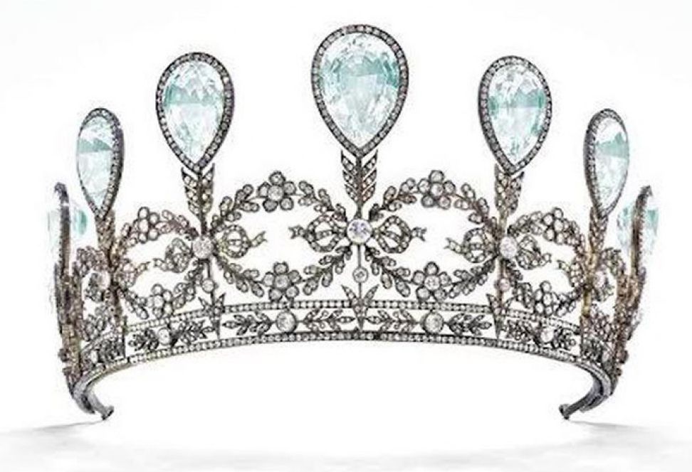 A casa de leilões Christie’s colocou à disposição uma tiara produzida por Fabergé, joalheiro dos czares russos, confeccionada com águas-marinhas e diamantes, cuja pré-venda está estimada entre 230 e 340 milhões de dólares.