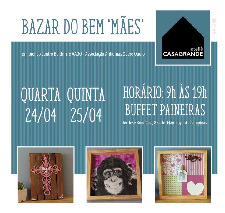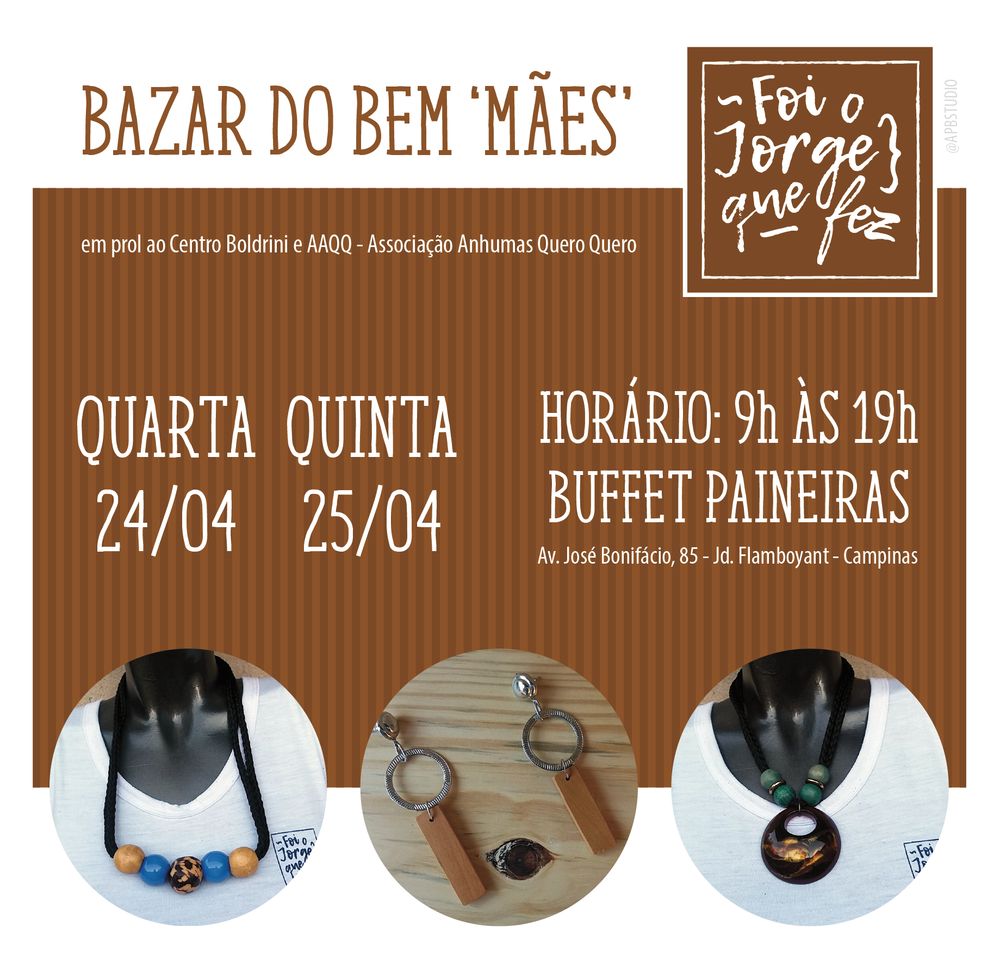 Anote: Bazar do Bem Edição Mães 2019 (Buffet Paineiras – Av. José Bonifácio, 85 – Jardim Flamboyant, Campinas – SP)