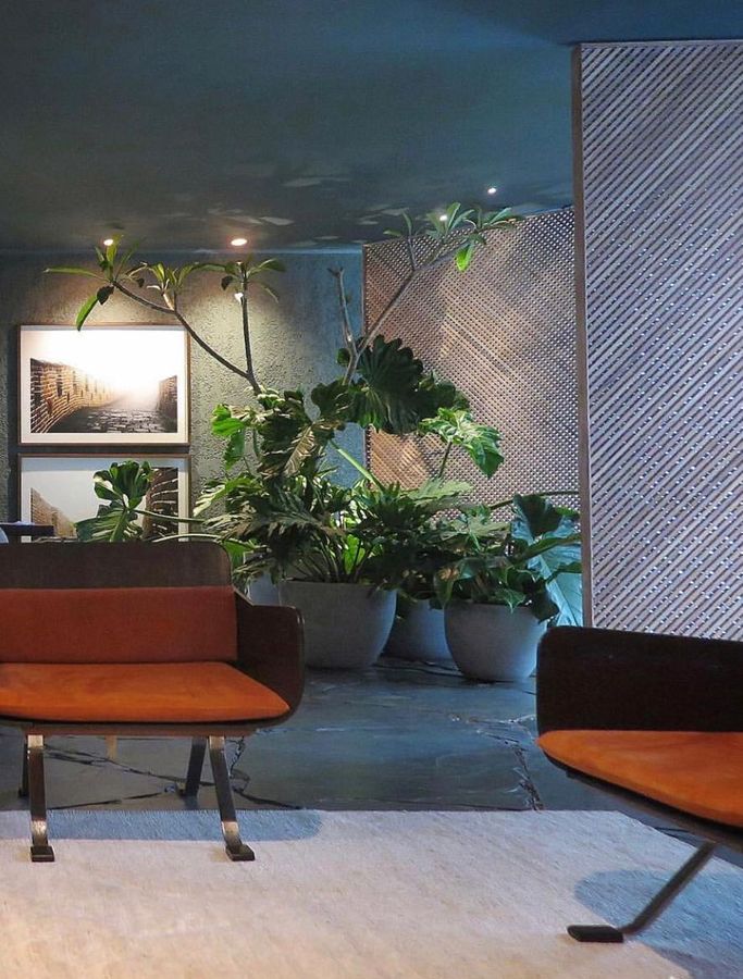 - Grandes composições com vasos com folhagem exuberante estavam em muitas ambientações. A ideia de trazer a natureza para os ambientes acontece há algum tempo, porém, nesse ano, eles capricharam ainda mais.