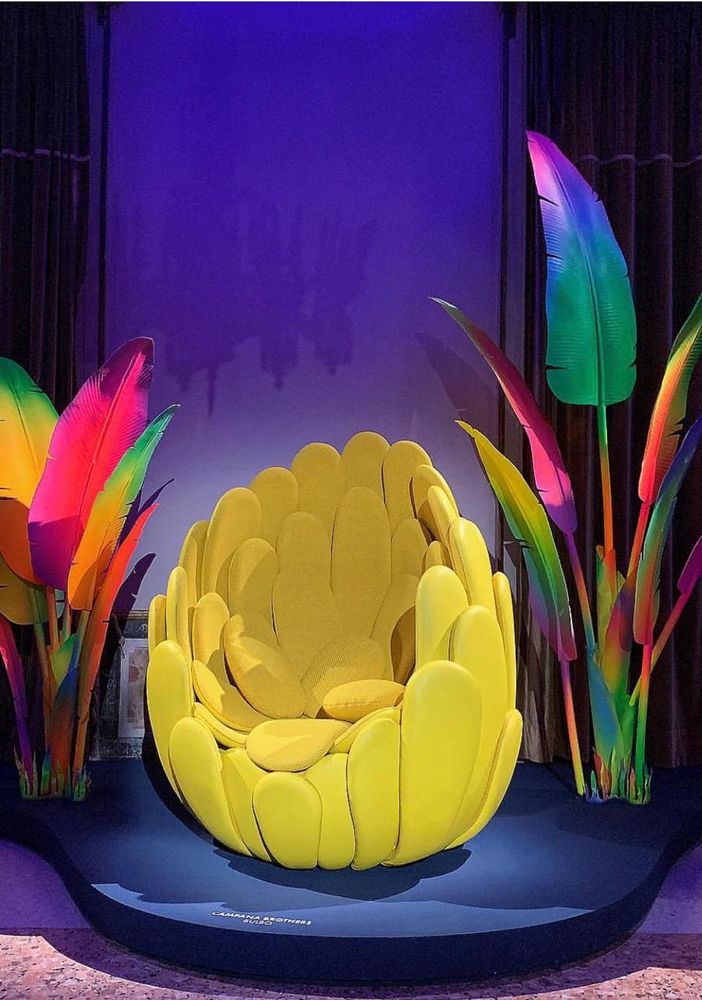 Louis Vuitton – Com a coleção ‘objetos nômades’, inspirado em viagens, o espaço estava incrível. Destaque para a poltrona Bulbo dos Irmãos Campana – poltrona formada com ‘pétalas’ de couro de uma flor tropical.