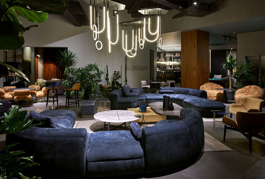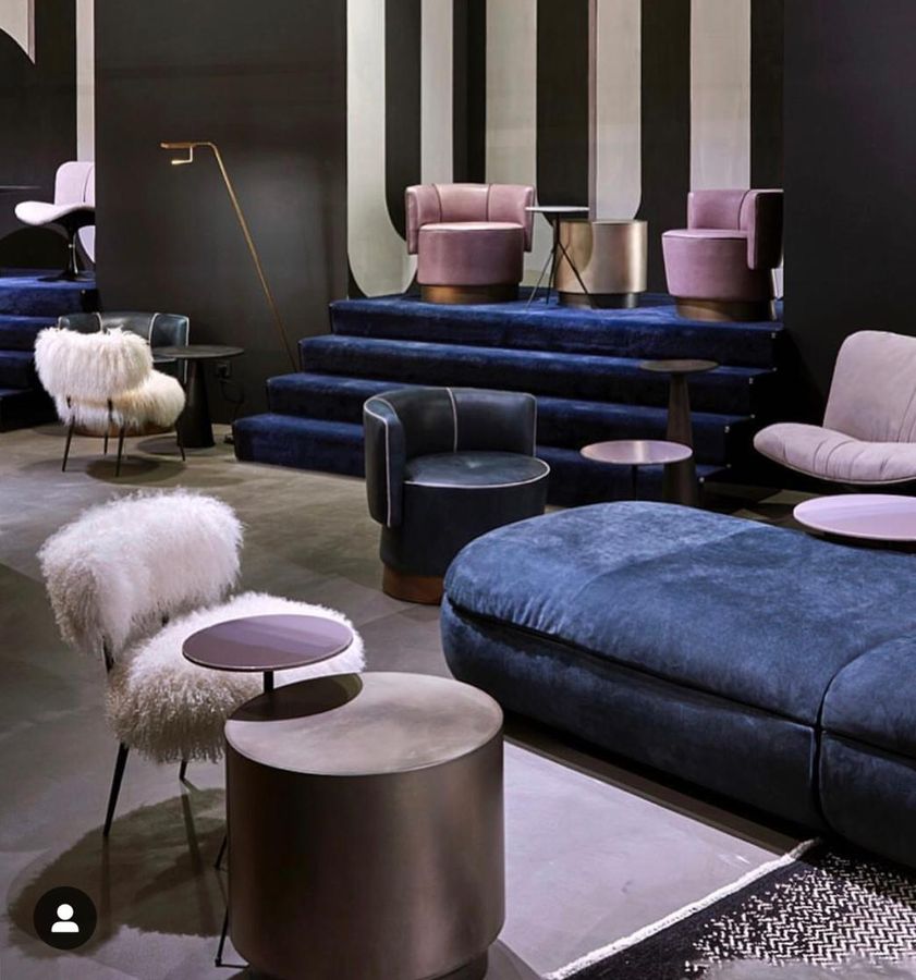 No Salão, seleciono as marcas que mais gosto, como Baxter, Kartell, Flexform, Diesel, Poltrona Frau, Zanotta e Missoni.
