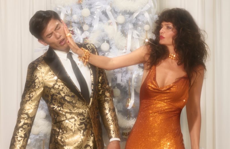 Helena Christensen slaps Simonas Pham in Versace Holiday 2019 campaign