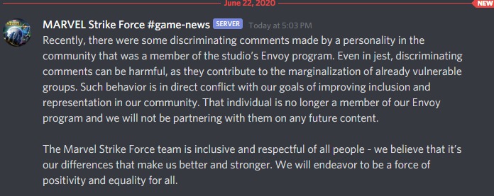 Khasino, um YOUTUBER do jogo Marvel Strike Force da empresa FoxNext para as plataformas Android e iOS gravou um vídeo fazendo uma piada homofóbica com a personagem Ellie Phimister, a Negasonic (no Brasil, Míssil Adolescente Megassônico). Só para localizar: ela foi interpretada pela atriz Brianna Hildebrand nos ‘Deadpool’ e ‘Deadpool 2’, a adolescente de cabelos curtos que namora a Yukio.
