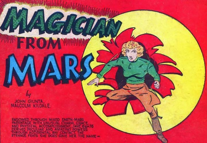 A primeira super-heroína meta humana da Era de Ouro das Histórias em Quadrinhos (1938-1956) foi Magician from Mars, criada por John Giunta e Malcolm Kildale para a Amazing-Man Comics #7 em Novembro de 1939. Publicação da Centaur Publications’ Amazing-Man Comics.