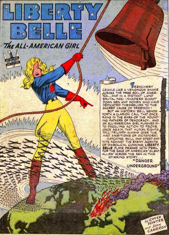 De origem polonesa, Libby fugiu da Alemanha depois que o pai foi assassinado pelos nazistas. Na viagem para França, seu barco foi destruído, obrigando-a a nadar para chegar na Inglaterra. Tornou-se repórter e depois apresentadora de um programa de TV. Quando conheceu patriota Tom Revere, ela ganhou uma réplica de um Sino da Liberdade da Filadélfia, que lhe deu poderes de velocidade, força e resistência. Tornou-se Liberty Belle.