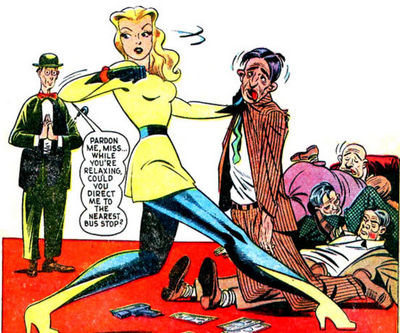 Ela o ajudou na defesa de um homem acusado injustamente de assassinado. Depois de mais um caso, ela se mudou para viver suas próprias aventuras carregando uma arma de energia solar. Ocasionalmente voltava a ajudar o Tocha, assim como o Capitão América e o Namor, o Príncipe Submarino.
