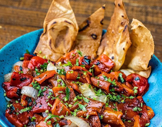 Entre as saladas estão as mais conhecidas taboule e mediterrânea, e a Mutabal, uma criação de Gbrail com berinjela defumada, legumes e romã.