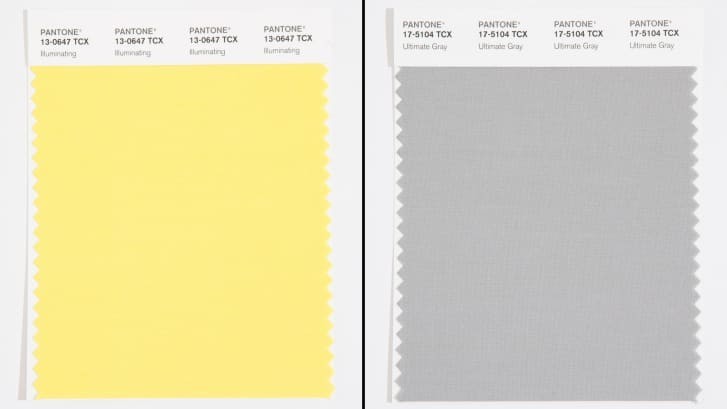 PANTONE 17-5104 Ultimate Gray e a PANTONE 13-0647 Illuminating são as cores Pantone 2021. Pelo segundo ano – a primeira vez foi em 2016 com Rose Quartz e o Serenity, dois tons complementares são as escolhas para equilibrar a força com o otimismo.
