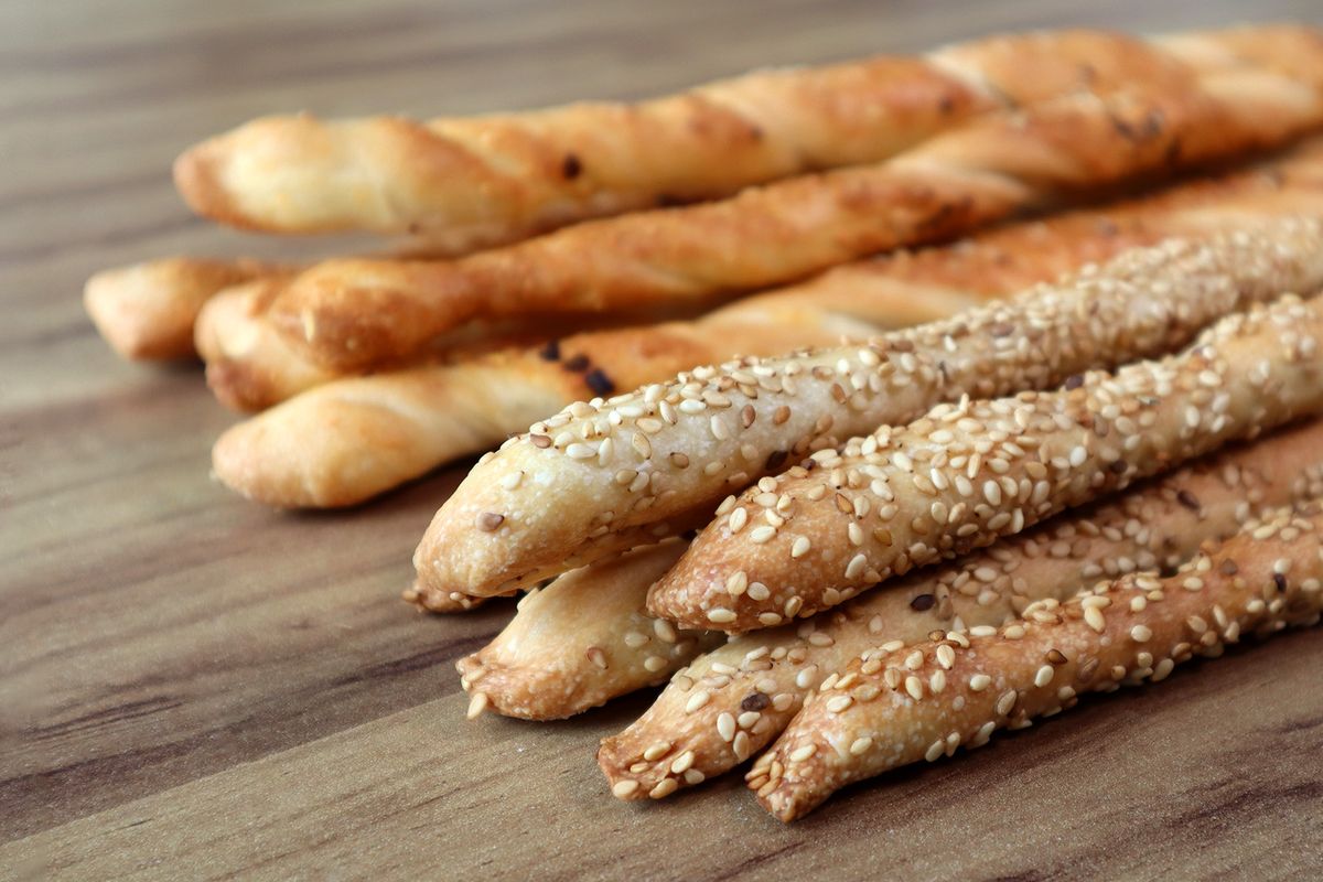 Grissini – Biscoito feito com farinha de trigo, azeite de oliva e água.