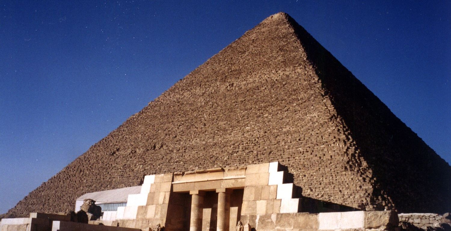 Construída pelos egípcios há cerca de 4.500 anos, é a única maravilha antiga ainda existente. Construída por volta de 2.500 a.C. como monumento funerário ao Rei Queóps, ela é a maior das três pirâmides de Gizé. Segundo o historiador grego Heródoto, 100.000 escravos ‘trabalharam’ durante 20 anos na construção da pirâmide. Sua construção revela um grande conhecimento de geografia, astronomia, geologia, matemática e outras ciências por parte dos construtores egípcios.