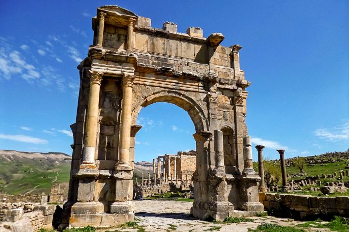 Arco de Caracala (Djémila, Argélia – 216 d.C.) – Construído em homenagem ao imperador Caracala, sua mãe Julia Domna e seu falecido pai Sétimo Severo. Djemila fica na área da antiga cidade romana de Cuicul (originalmente era o nome do Arco), que abriga algumas das ruínas romanas mais bem preservadas do norte da África.