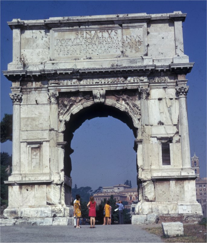 Arco de Tito (Roma – 81 d.C.) – O Arco de Tito foi construído pelo imperador Domiciano para comemorar a vitória de seu pai (Vespasiano) e seu irmão (Tito) na Rebelião da Judéia. O arco trás relevos mostrando as grandes riquezas que foram trazidas do saque de Jerusalém. Esse arco é inspiração para o famoso de Paris, criado em 1806.