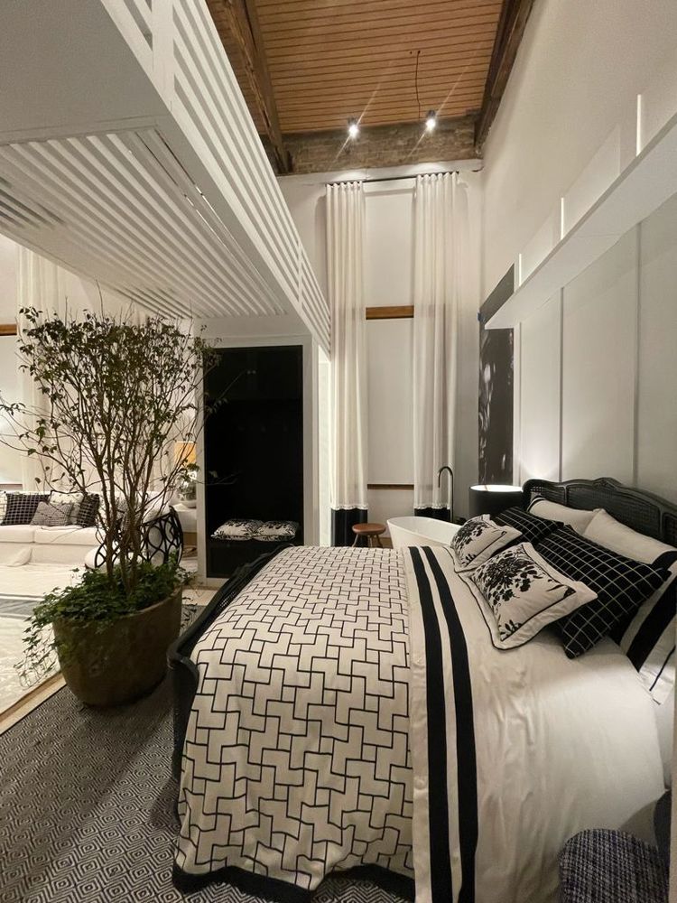 Também destaca a setorização das áreas com suas devidas funções, como a de uma casa em pleno funcionamento. Todo forro contornando as tesouras existentes é de PVC teto vinílico que, com aparência impecável de madeira, é sustentável e leve.