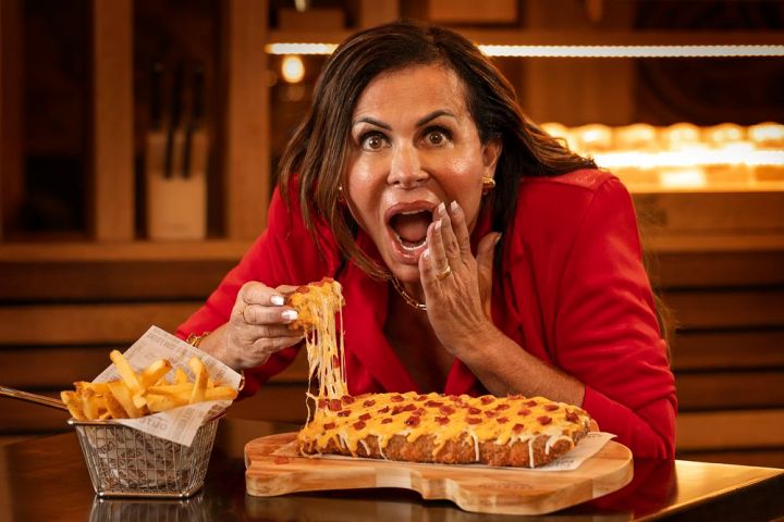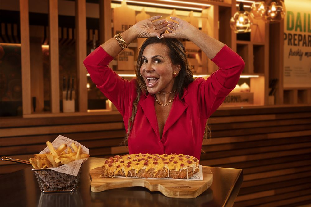 Gretchen é a estrela da campanha do Royal Cheese Ribs do Outback. A costela é desossada, crocante e empanada em farinha panko, recheada de queijos e coberta com um mix de queijos, molho cheese ranch e pedaços crocantes de bacon.