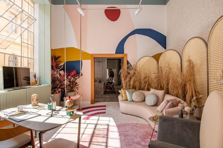 O ambiente aposta na vivacidade das texturas e cores. Num espaço de 28 m², em estilo contemporâneo, destacam-se os tons de verde e do rosas.