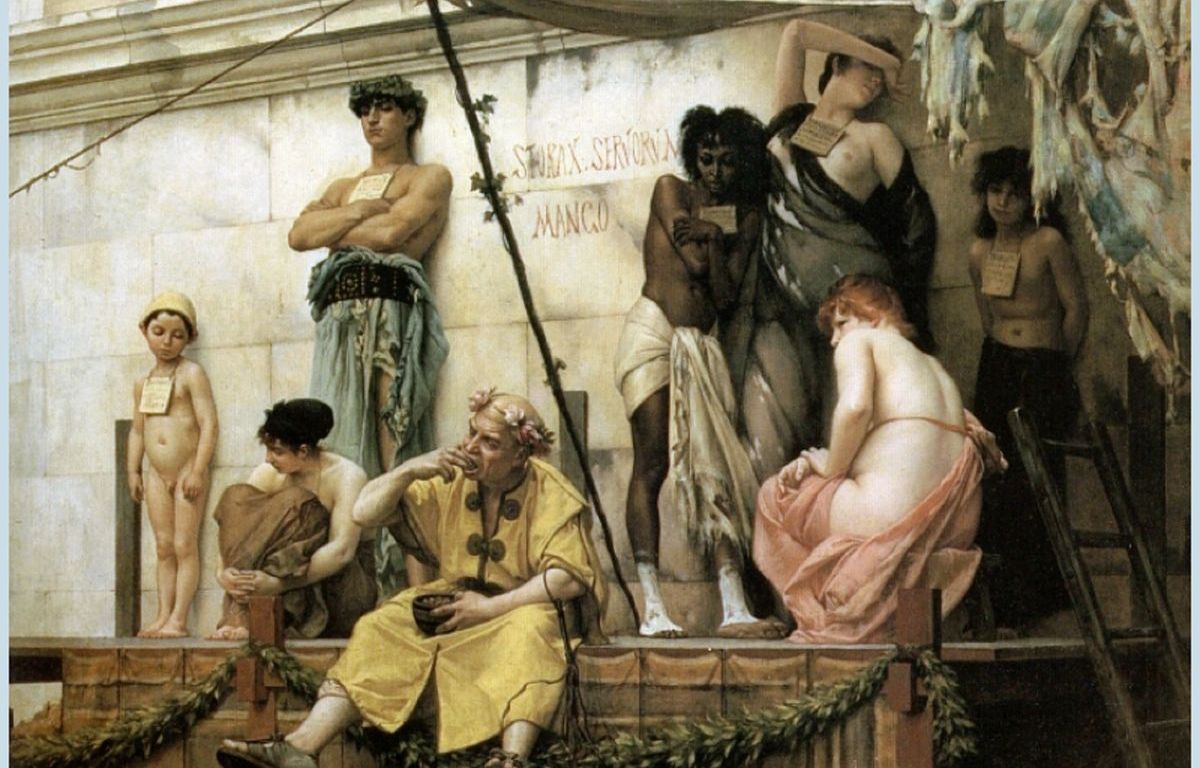 O Mercado de Escravos é uma pintura de 1882 feita pelo artista Gustave Boulanger. Ela descreve um leilão de escravos na Roma Antiga. No estilo Academicismo, ela mostra a venda de sete jovens escravos, desde crianças até adultos. Os homens e as três mulheres possuem aparências similares, o que , talvez, possa sugerir que fossem membros da mesma família que foram forçados a se sujeitar à escravidão devido às condições econômicas. Todos estão usando etiquetas para indicar que estão à venda. A mulher mais alta, ao fundo, está vestindo uma roupa translúcida que claramente mostra os seus seios e pelos púbicos. Ela está tentando cobrir os seus olhos, porque, talvez, os potenciais compradores incluem amigos ou vizinhos, os quais estão a vendo nua pela primeira vez. O leiloeiro almoça com uma atitude um tanto casual.