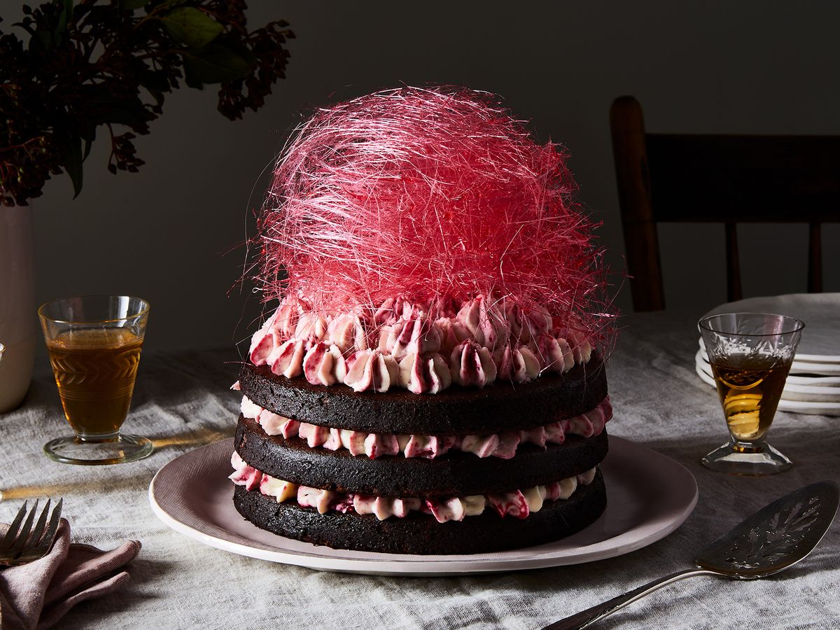 Bolo de Chocolate com fio de caramelo de cranberry @ Reprodução