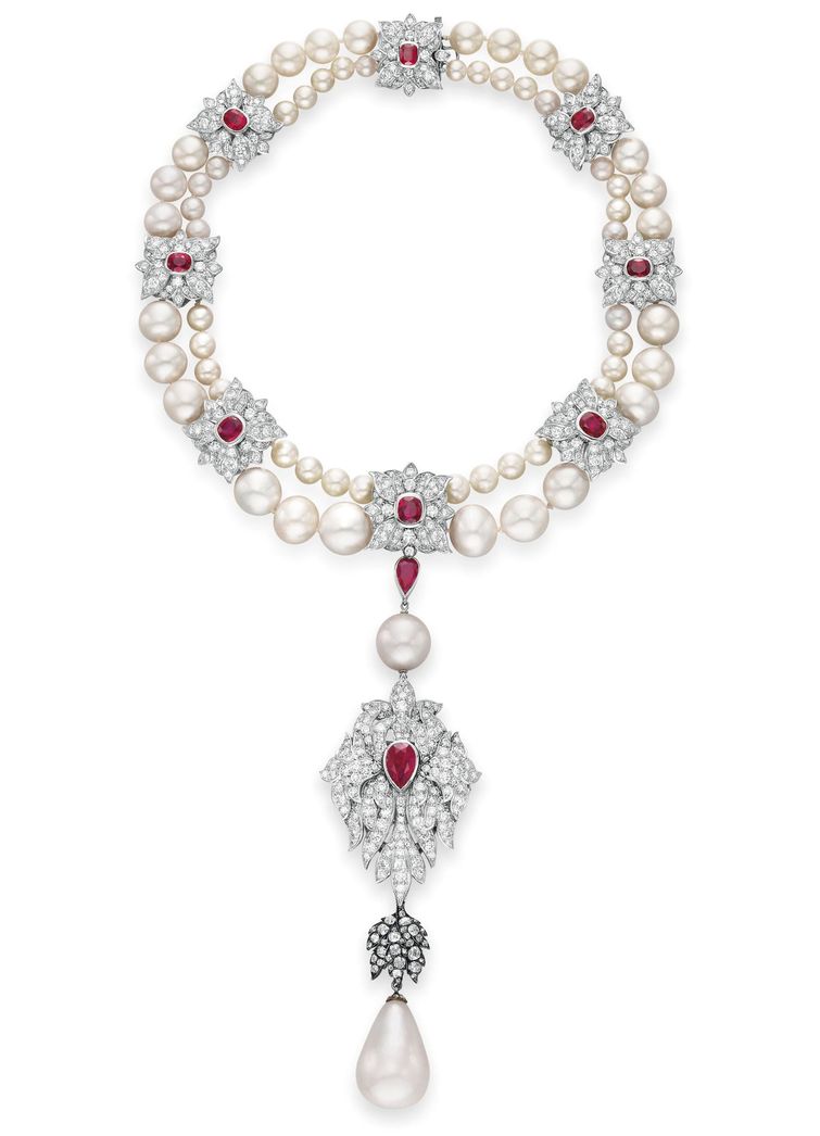 Colar de Pérolas La Peregrina com diamantes e rubis @ Getty Images