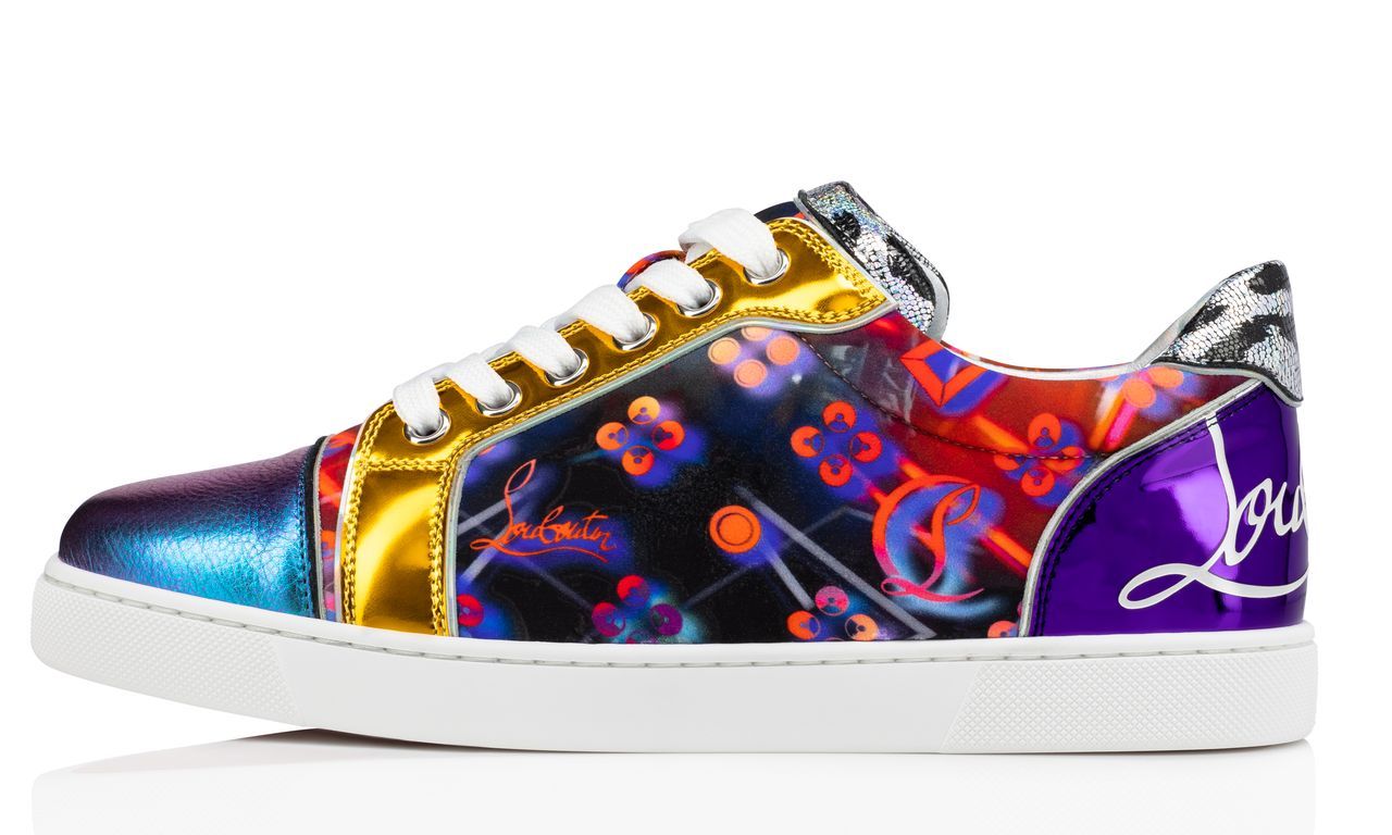 A Maison Christian Louboutin apresenta uma coleção Maximalista, e muito, mas muito colorida. Dentre os lançamentos, o tênis Fun Vieira oferece um mix de cores e texturas em efeito holográfico e diversas estampas.