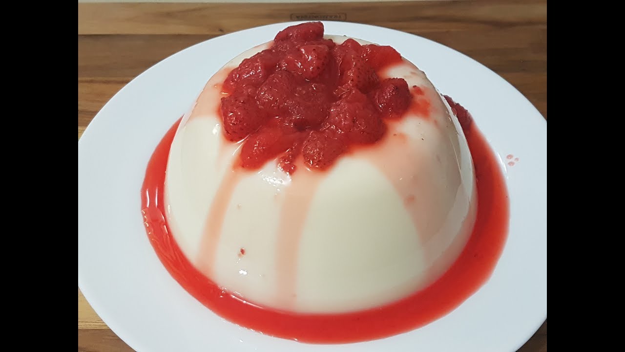 Panna Cotta: coloque o creme de leite, o açúcar e a baunilha em uma panela para ferver. Após a fervura, desligue o fogo e adicione a gelatina já hidratada (siga instruções do pacote). Coloque em taças individuais e leves à geladeira.