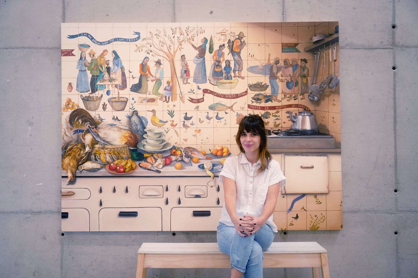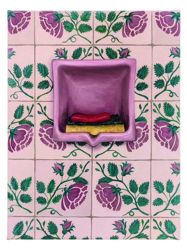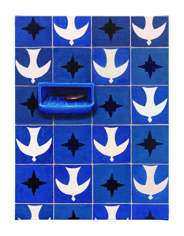 A curiosidade é que os cenários, por mais reais que pareçam, foram todos inventados pela pintora. Tudo foi inspirado por milhares de imagens de azulejos de todos os tipos, catalogadas em pesquisas pela artista. A partir dessas referências, Egreja criou recortes e imagens únicas, como uma saboneteira com azulejos de Athos Bulcão.