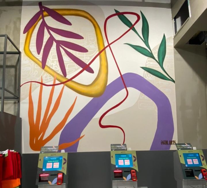 A loja contará com um mural assinado pela artista Gislaine Martins, conhecida como Gim Arts, que enxerga na arte um poder transformador, desenvolve o seu trabalho misturando elementos de arquitetura, design e estudo de cores e demarca sua identidade com traços fluidos, feitos em movimentos espontâneos.