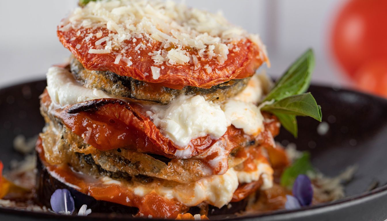 Café Maritaka – Croissant recheado de queijo brie e geleia de tomate (R$15) / Lasanha de berinjela com tomate seco (veg) (R$30) / Lasanha de berinjela com tomate seco (ragu bovino) (R$35) / Cheesecake com geleia de tomate (R$15) / Café espresso (R$5)