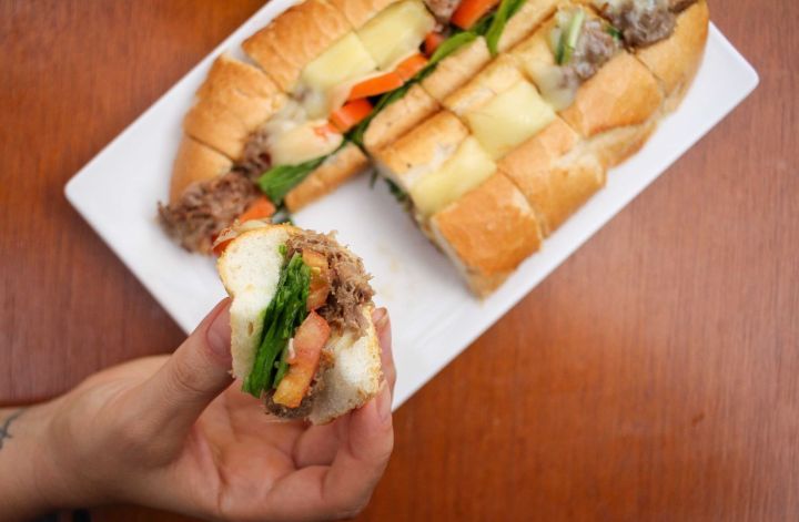 ARMAZÉM CAMBUÍ – Lanche Emílio Ribas – Pernil desfiado, queijo muçarela argentina derretida, vinagrete e maionese.