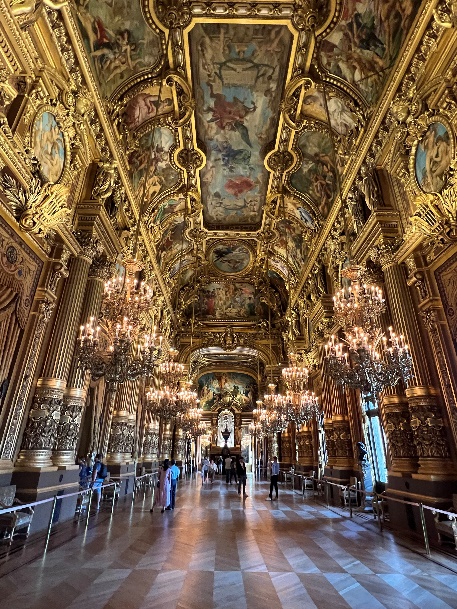 Outro lugar que vale muito a pena conhecer é a Ópera de Paris (1862), que demorou 13 anos para ficar pronta. Muito presente o estilo barroco, você pode ver a riqueza de detalhes, mistura de materiais, o mármore tão presente. Uma atmosfera de luxo, beleza e história.