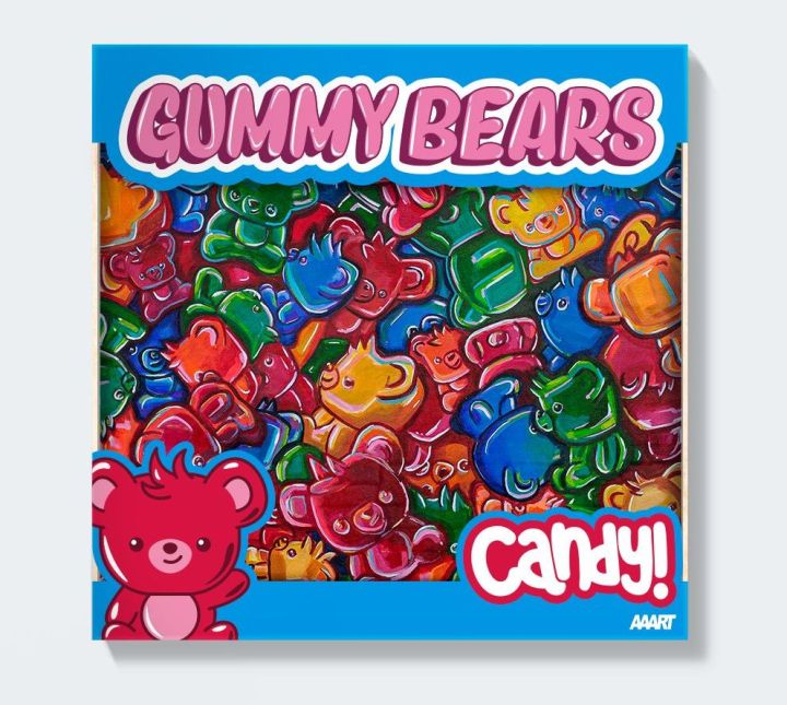 “Tudo começou com o ursinho de goma (gummy bears). Desenhei uma versão, seguida de outras em diversas poses. O resultado foi reproduzido em quadros, moletons, camisetas e patchs”, contou o artista.