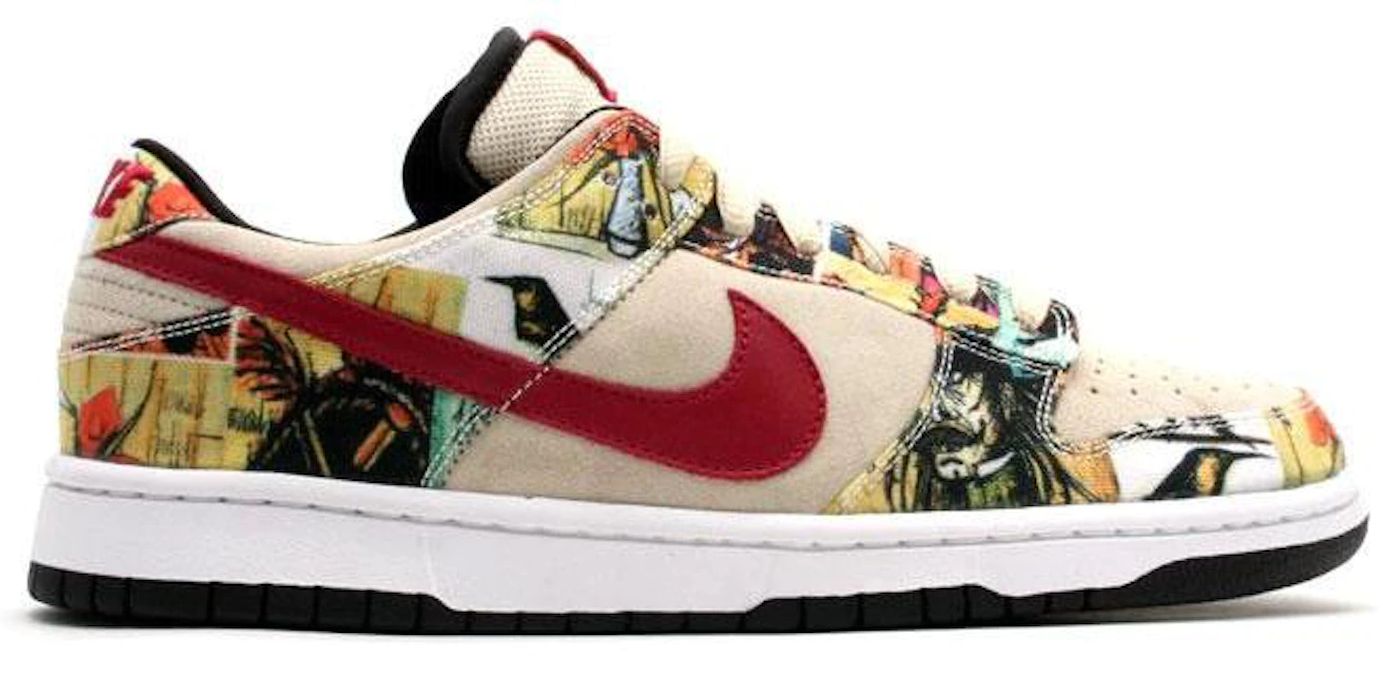 Nike SB Dunk Low Paris – O sneaker de 2003 contém gravuras do pintor expressionista francês Bernard Buffet, que fez parte do grupo antiarte abstrata L’homme Témoin e possui cerca de 8 mil pinturas e gravuras criadas. Como a pintura representada no modelo foi cortada de forma diferente para cada par, cada exemplar é único. O valor de mercado ultrapassa os R$2 milhões.