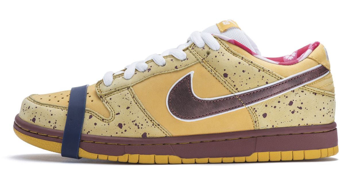 Nike SB Dunk Low Yellow Lobster – O modelo de 2009, uma colaboração entre a Nike e a CONCEPTS lançado em cores variadas como azul, roxo, vermelho e amarelo, ganhou 36 pares produzidos e não foram vendidos nos canais oficiais, mas presenteados para amigos e familiares da marca em comemoração ao lançamento do modelo na versão em azul. Apenas duas unidades estão disponíveis na plataforma StockX e o exemplar é avaliado em cerca de R$ 239 mil.